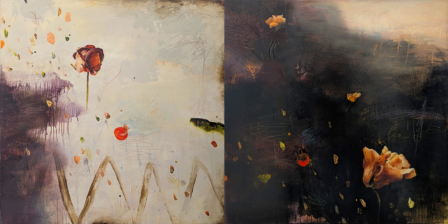 Abided Acrylic, charcoal, pencil, paper on panel40” x 80” Diptych Available View fullsize Detail View fullsize Detail Back to 2025 paintings