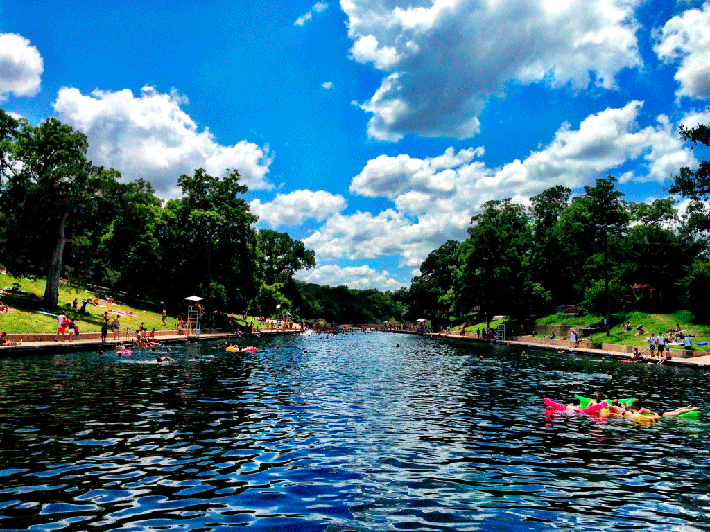 Barton Springs is a magical man-made swimming pool filled by a natural spring. The pool maintains a constant temperature of about about 68°F year round. It’s the perfect antidote to a hot, dry, summer day in Texas.