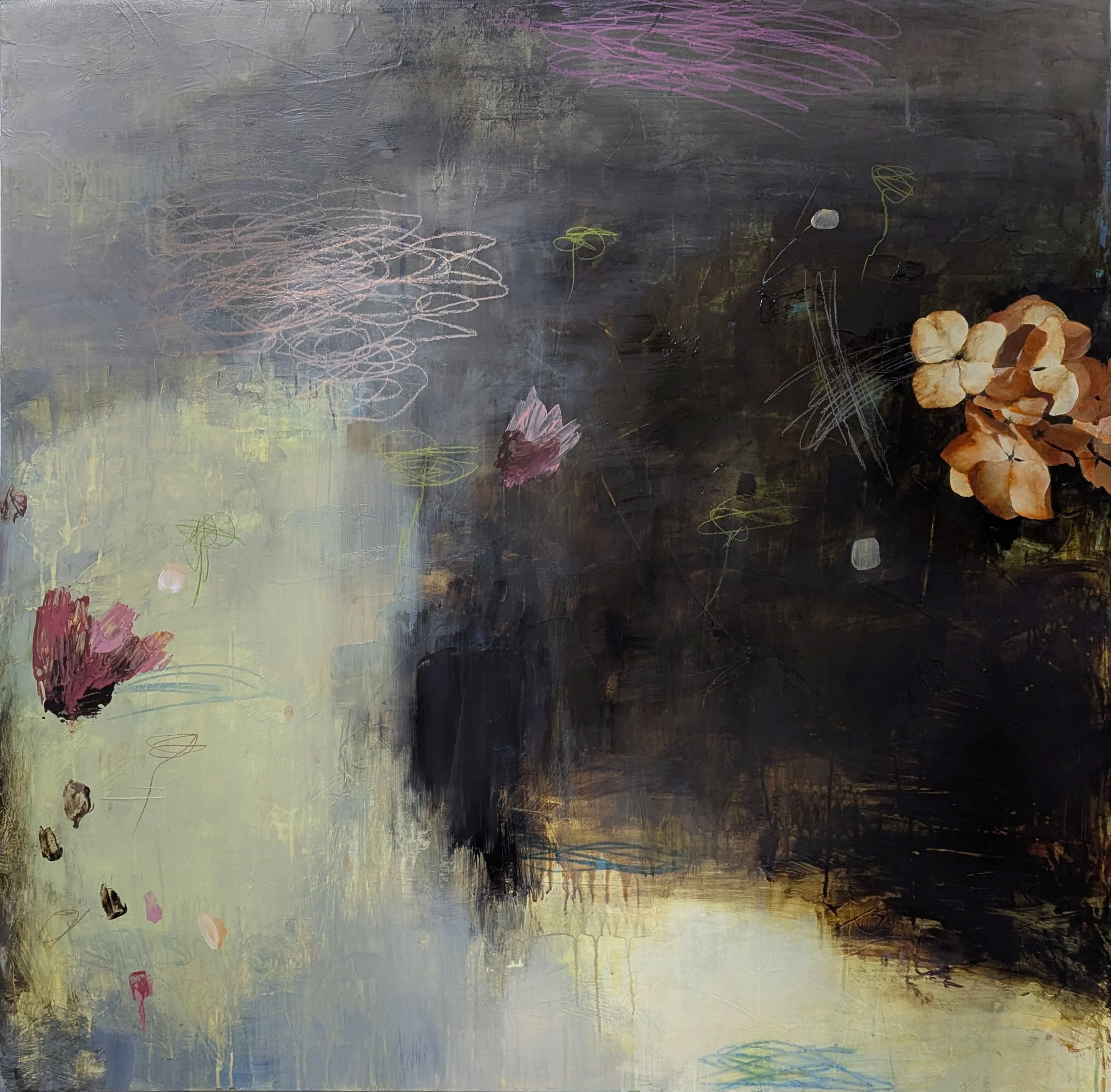 Concurrent Acrylic, charcoal, pencil, paper on panel40” x 40” SOLD View fullsize Detail View fullsize Detail Back to 2025 paintings